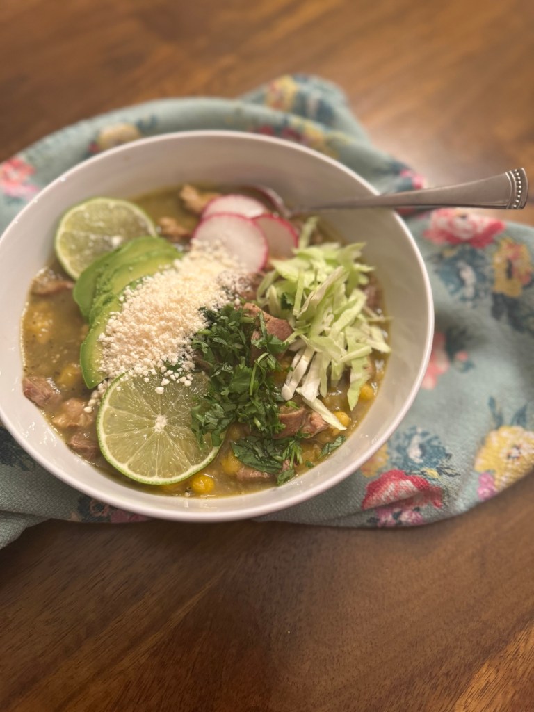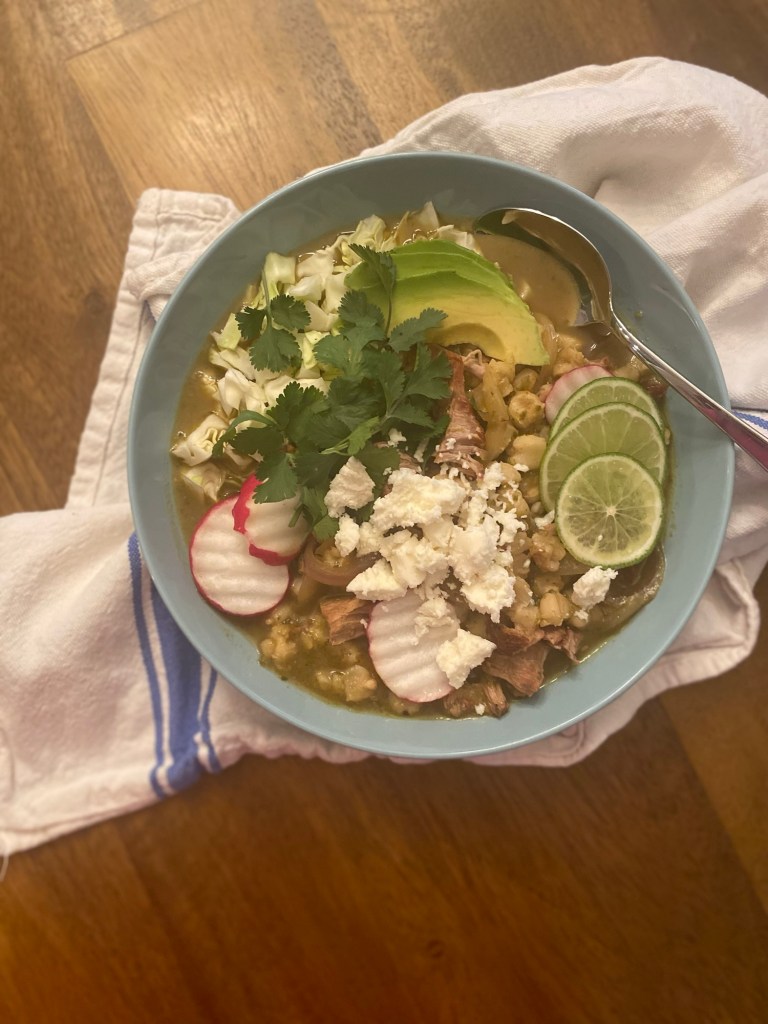 I’ve been hooked on Pozole for years- it’s my go-to comfort the moment the temperature drops. Pozole, a traditional Mexican soup made with hominy, tender meat, and layers of chiles and toppings, is pure comfort in a bowl. I made a big pot two weeks ago for my dear friend Mark while in Atlanta for PRIDE weekend. Monday morning, he texted me: “Finished the last bowl of pozole today. Thank you for the nourishment- even after you’ve left.” That message was my sign- its time to share it.